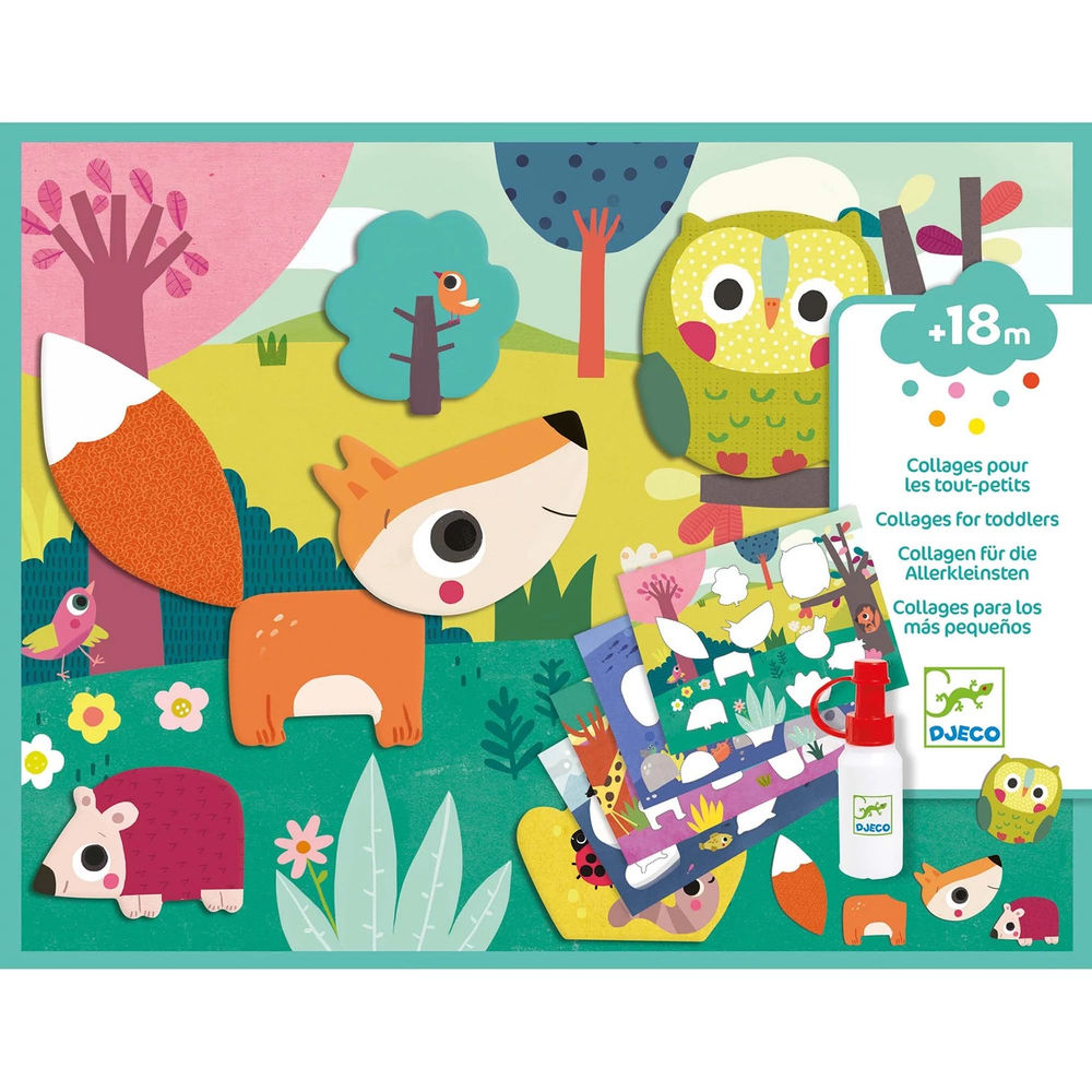 Un premier coffret collage pour les tout petits à partir de 18 mois. Des formes épaisses faciles à décoller pour coller de jolies illustrations et créer 4 tableaux.