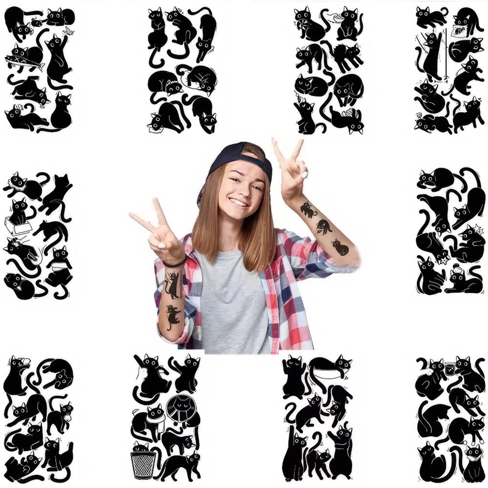 Zeig deine Liebe für geheimnisvolle Samtpfoten! Mit diesem Set aus 10 Bögen voller eleganter schwarzer Katzen-Tattoos verleihst du deinem Stil eine magische Note. Einfach aufzutragen, halten sie mehrere Tage und sind ein echter Hingucker. Perfekt für Partys, Festivals oder einfach für jeden Tag.